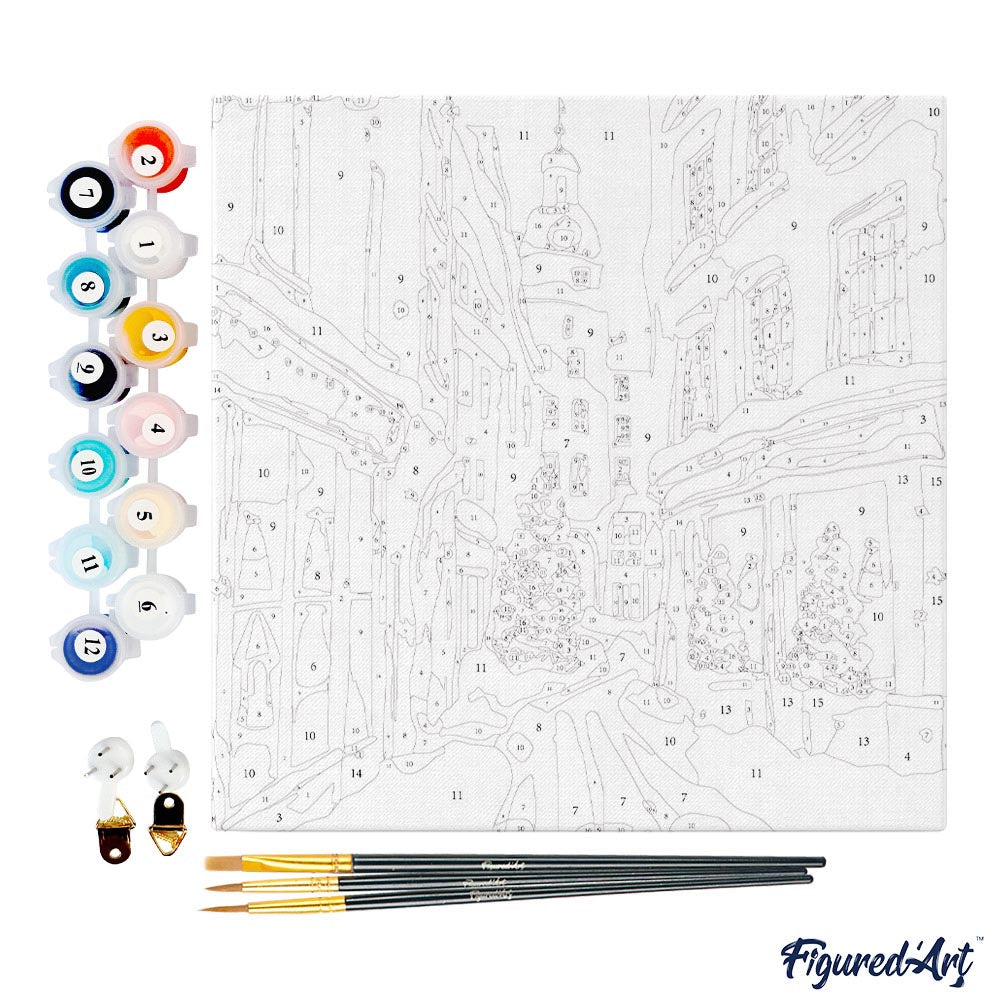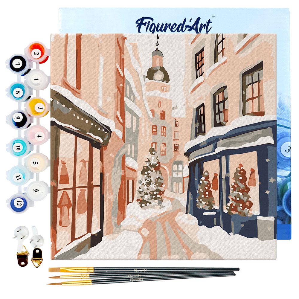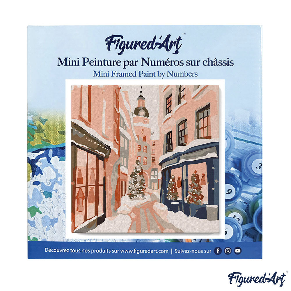 Modelo: Mini Pintura por Números 20x20cm con bastidor - Callejón navideño nevado