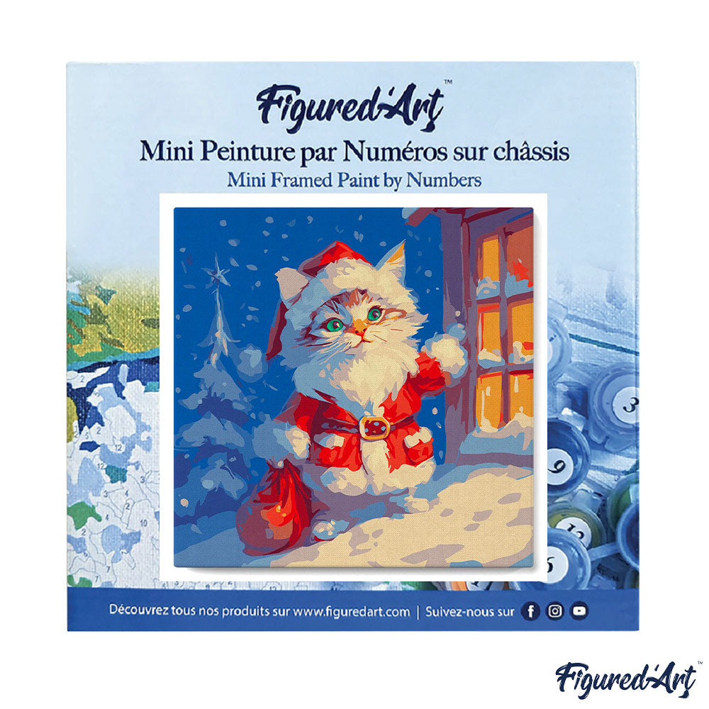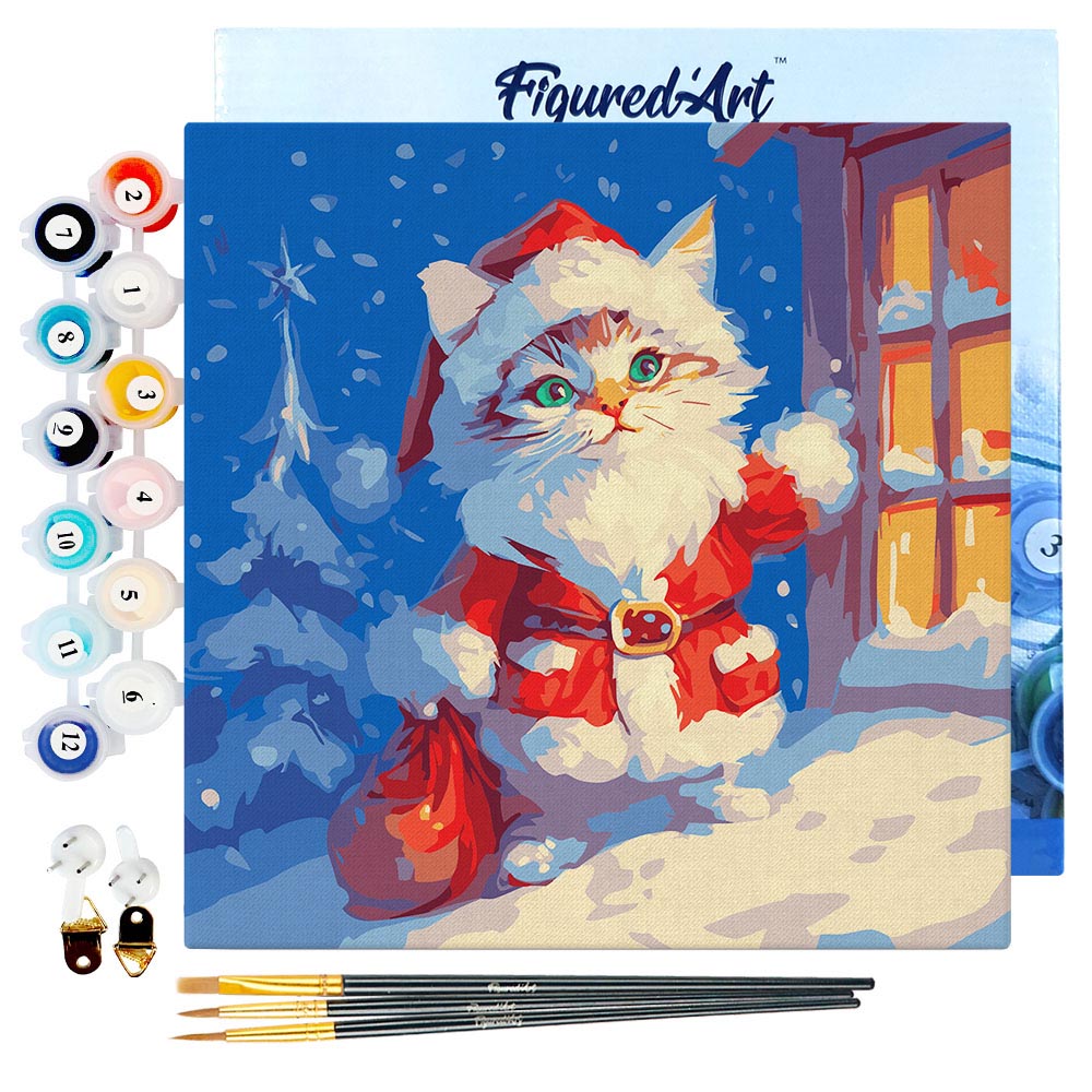Modelo: Mini Pintura por Números 20x20cm con bastidor - Gatito de Papá Noel