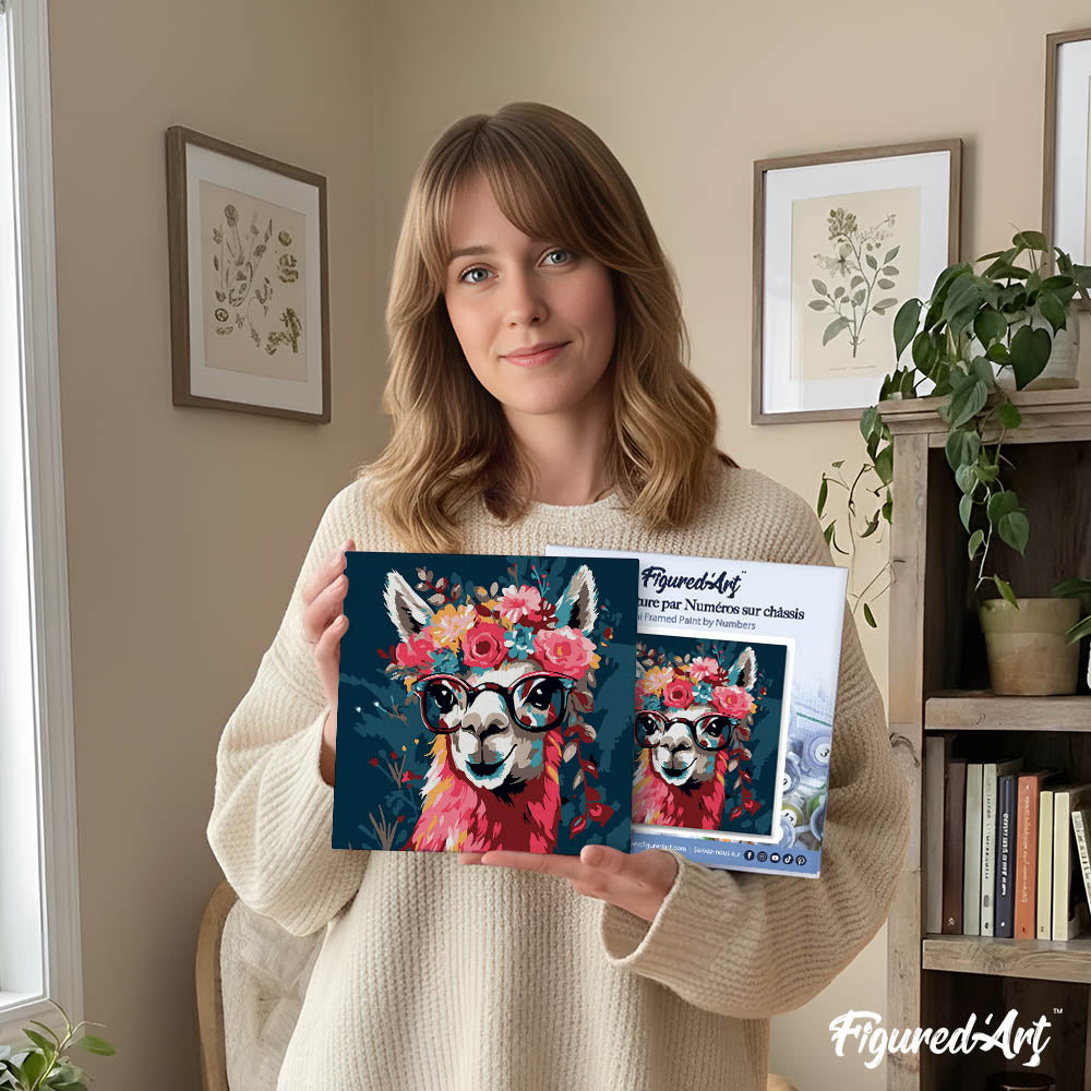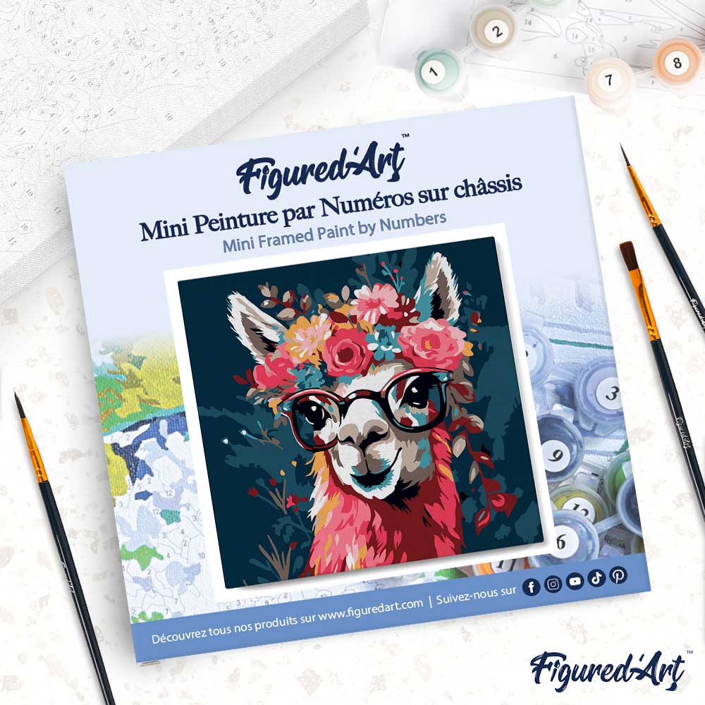 Modelo: Mini Pintura por Números 20x20cm con bastidor Llama Fantasía con Flores