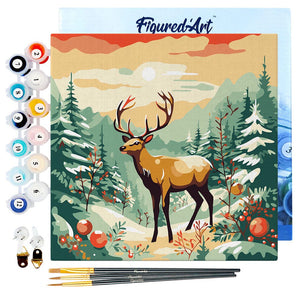 Modelo: Mini Pintura por Números 20x20cm con bastidor - Majestuoso ciervo invernal