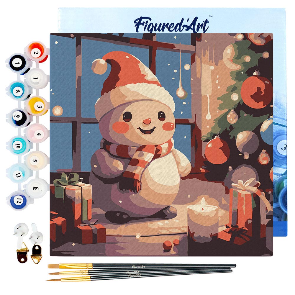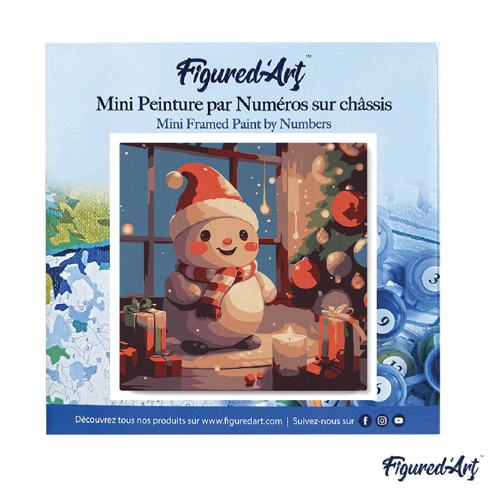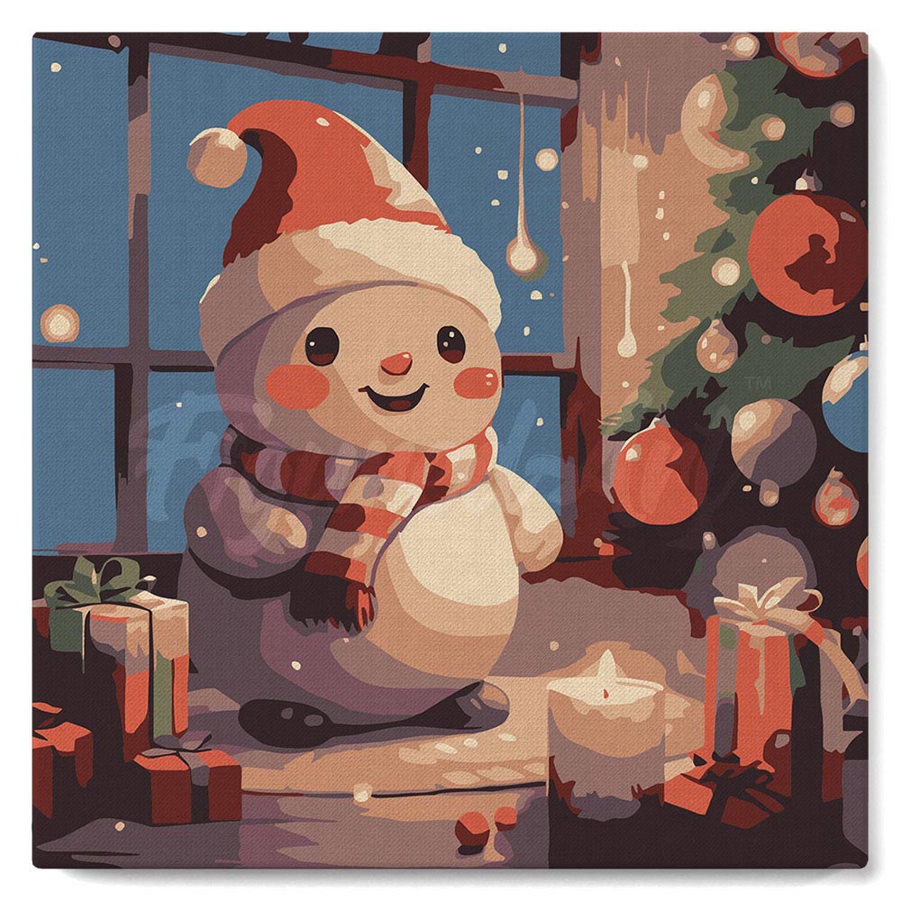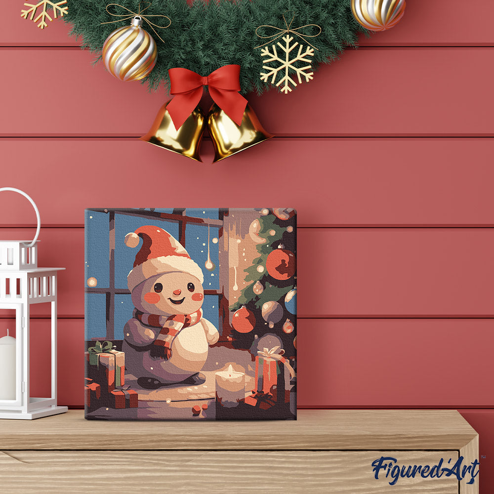 Modelo: Mini Pintura por Números 20x20cm con bastidor - Muñeco de Nieve Feliz en la Habitación