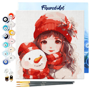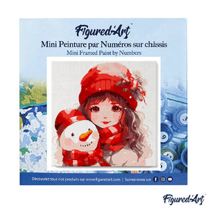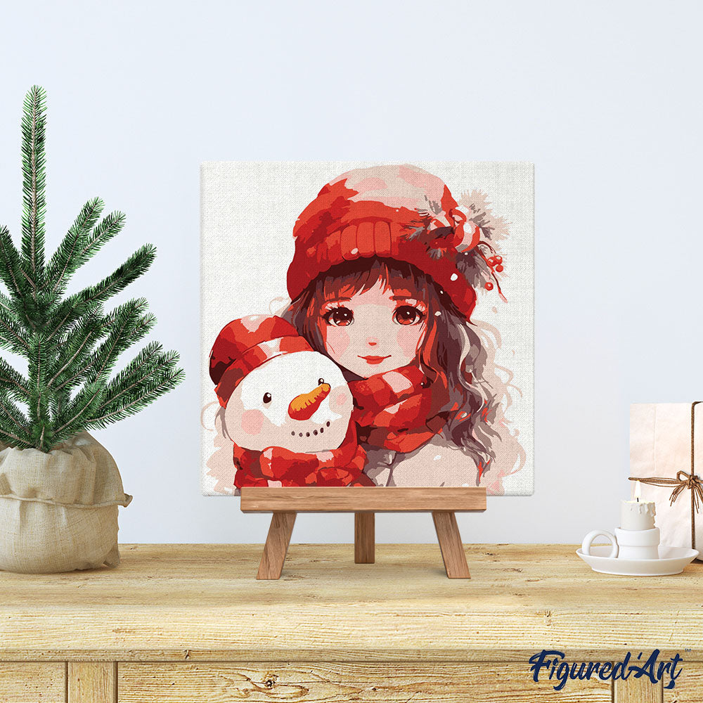 Modelo: Mini Pintura por Números 20x20cm con bastidor - Niña bonita y muñeco de nieve