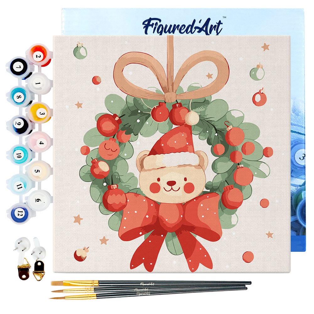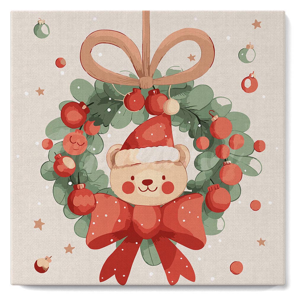 Modelo: Mini Pintura por Números 20x20cm con bastidor - Oso con corona navideña