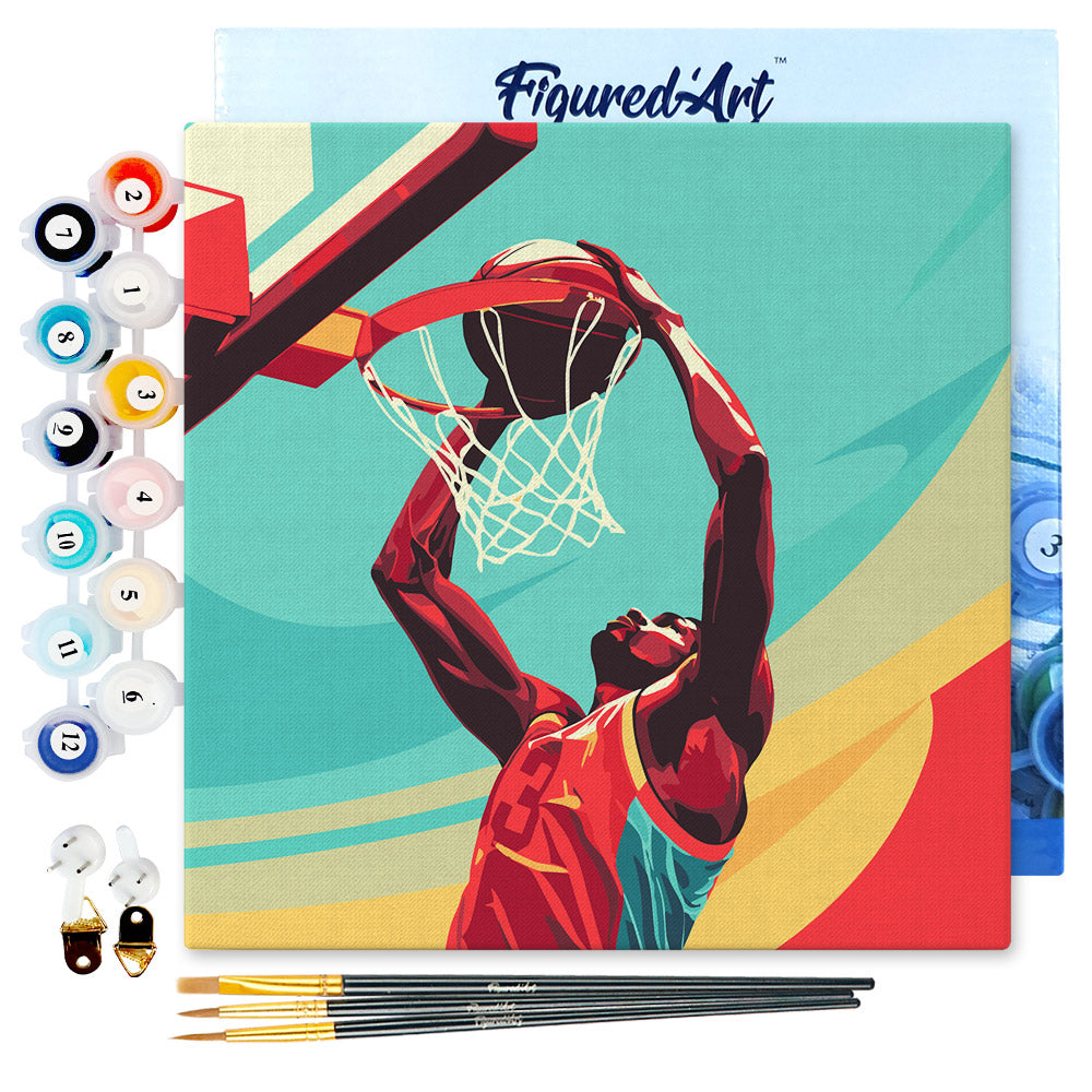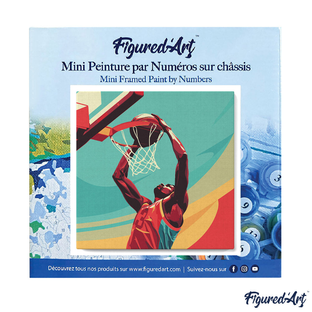 Modelo: Mini Pintura por Números 20x20cm con bastidor - Póster Deportivo de Baloncesto