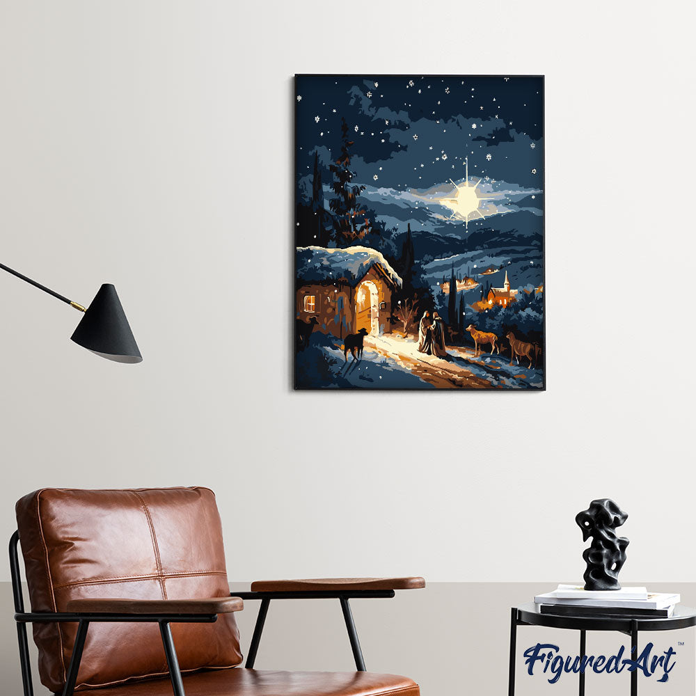 Kit completo de pintar por números con el lienzo estirado en un bastidor de madera ya montado. 100% listo para ser usado.