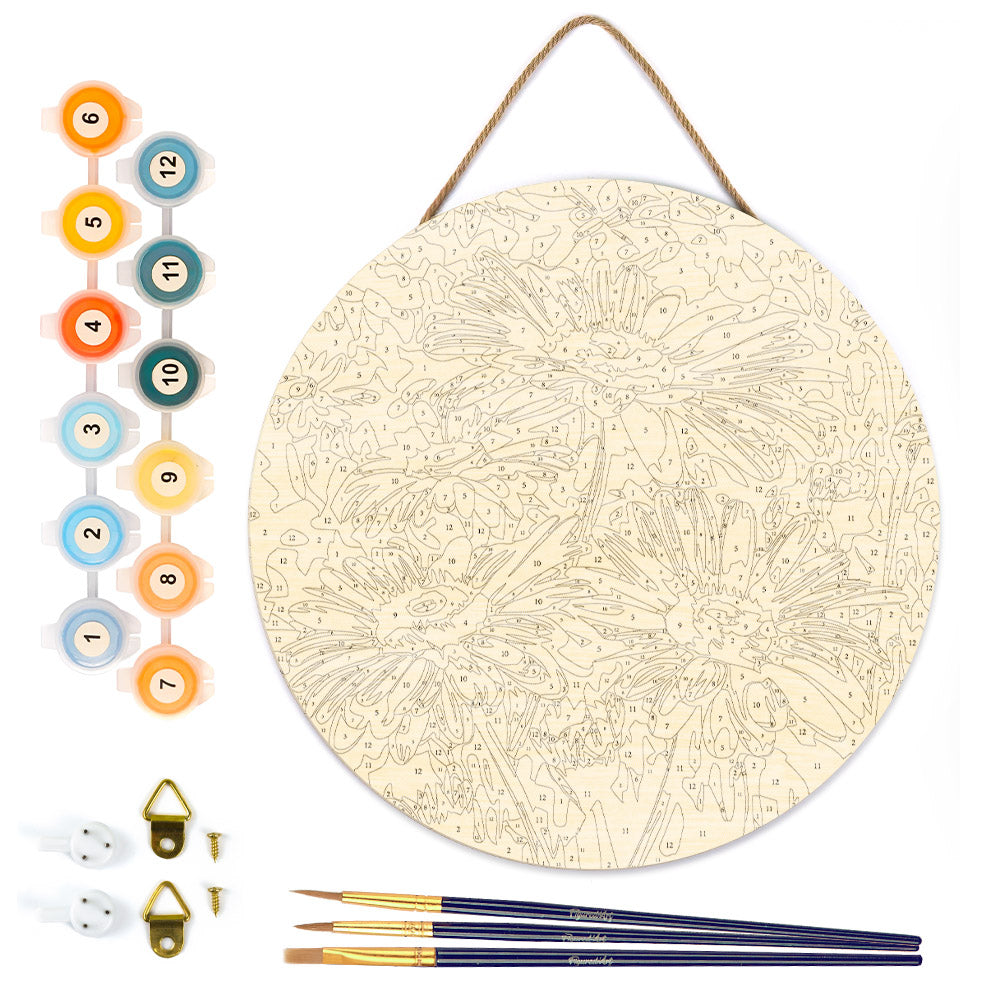 Descubre el efecto relajante de pintar por números. Nuestro kit de pintura por números en disco de madera es la introducción ideal a un hobby gratificante que trae alegría y embellece tu hogar con arte creado por ti.