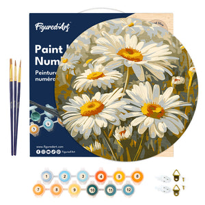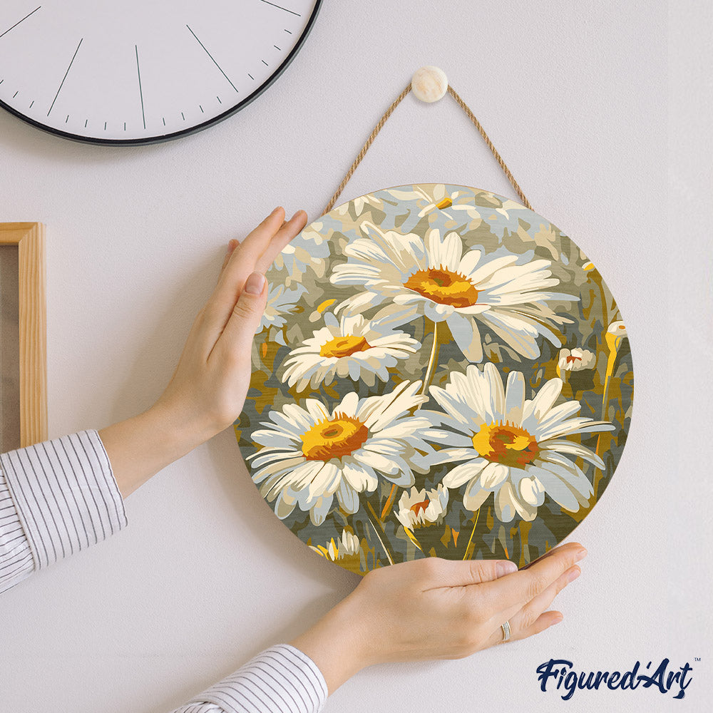 Modelo: Pintar por Números en Disco de Madera - Margaritas