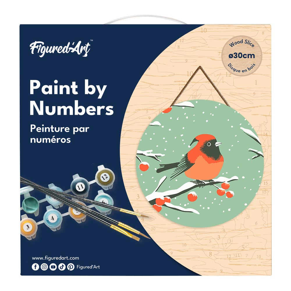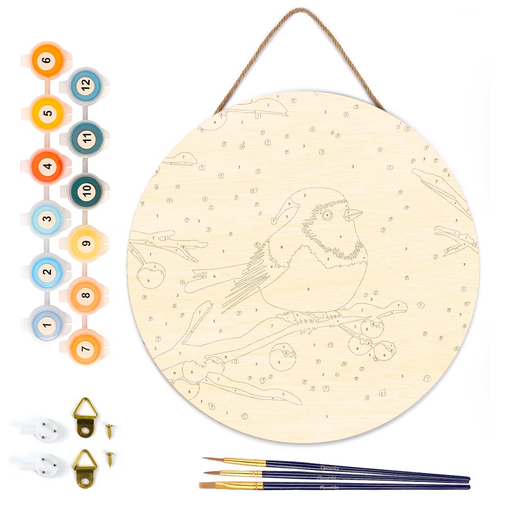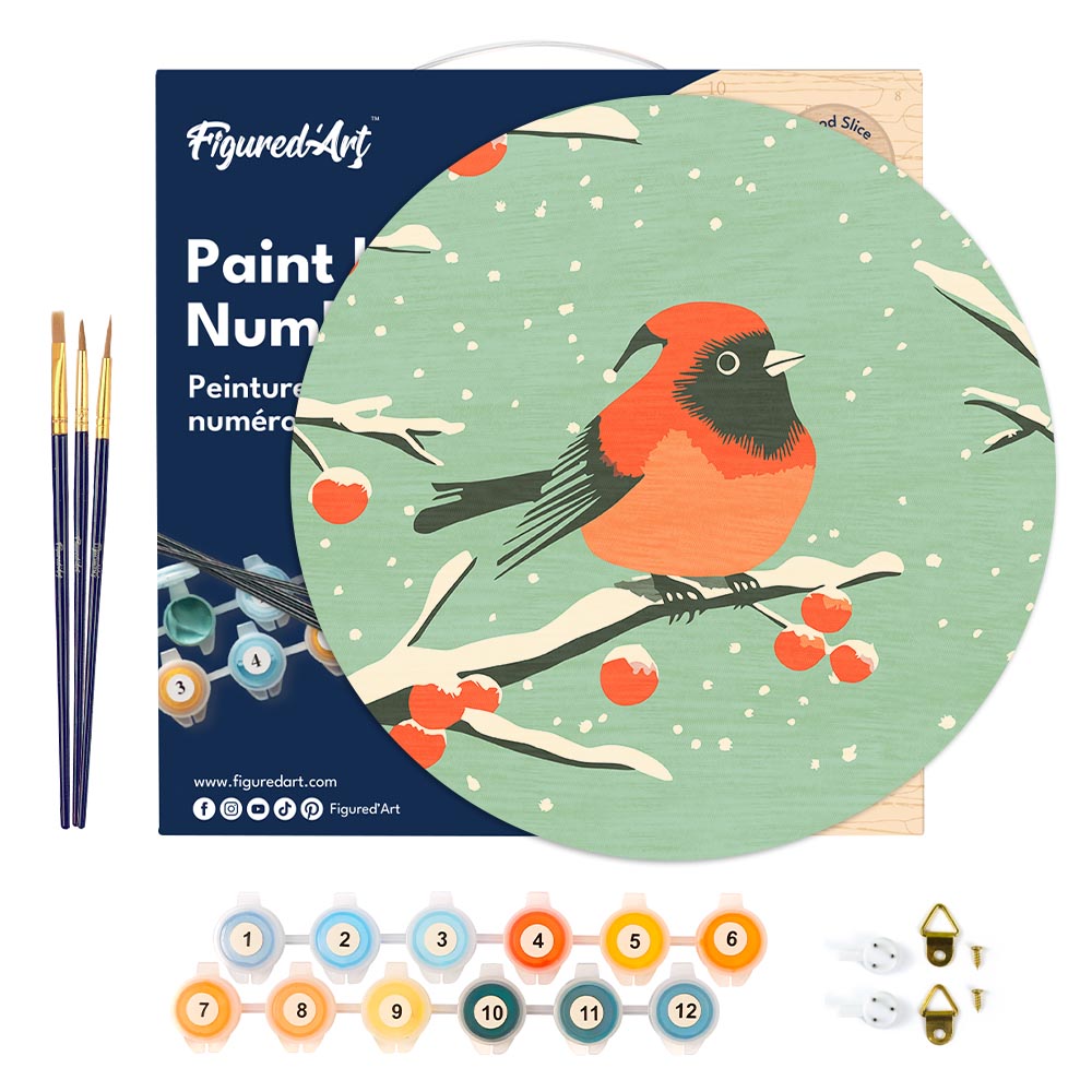 Modelo: Pintar por Números en Disco de Madera - Pájaro rojo de invierno
