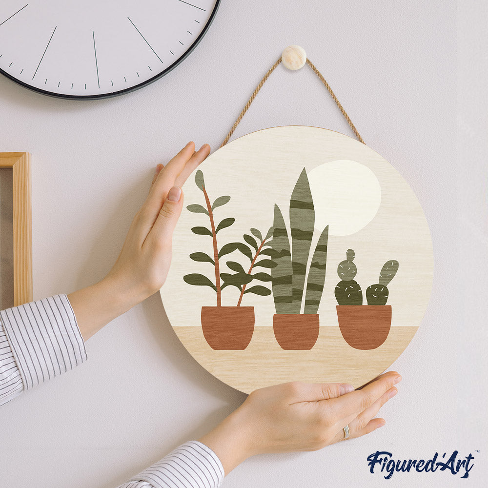 Modelo: Pintar por Números en Disco de Madera - Plantas grasas