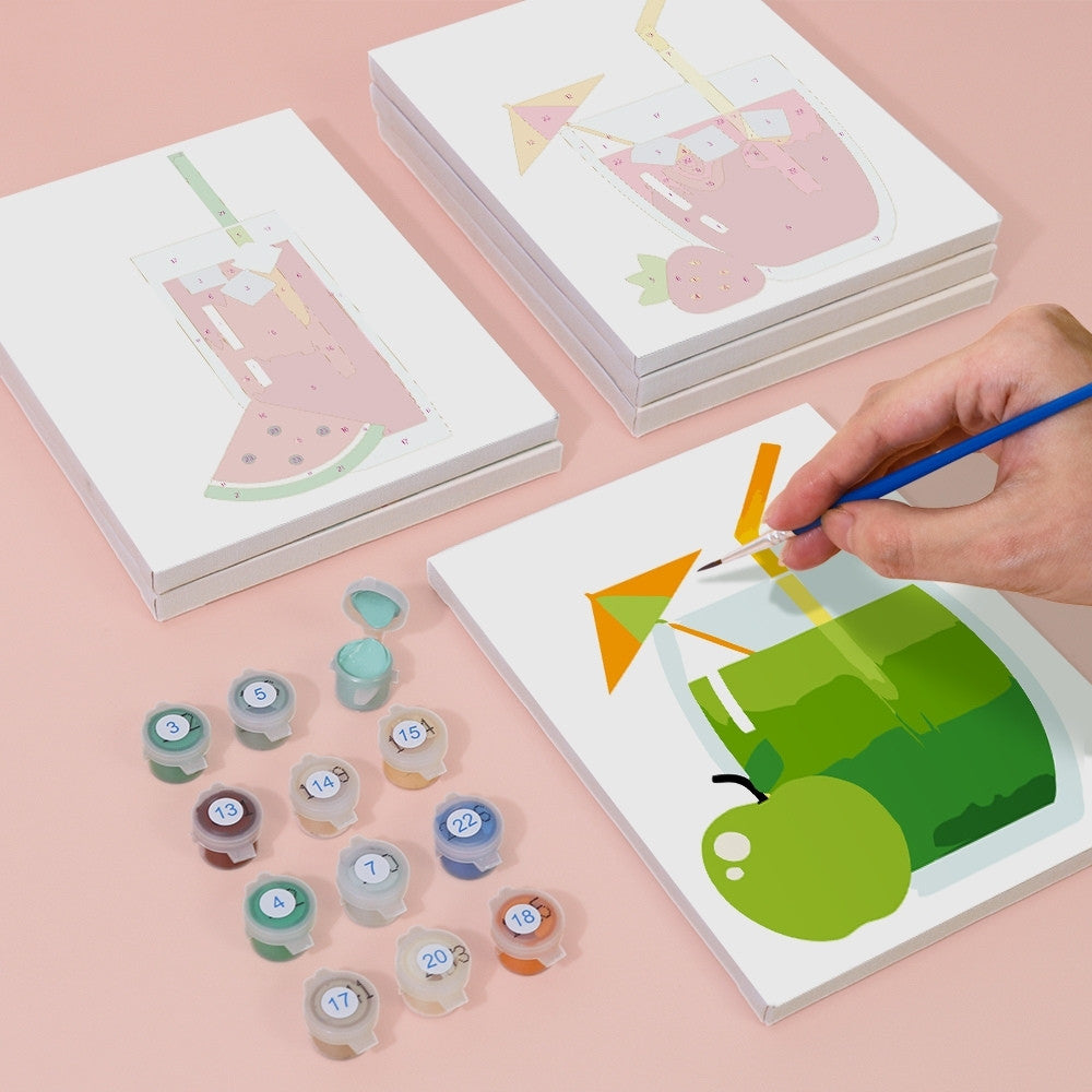 Mini Pintar por números 15x20cm (6 piezas) - Bebidas de Frutas