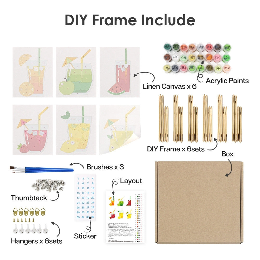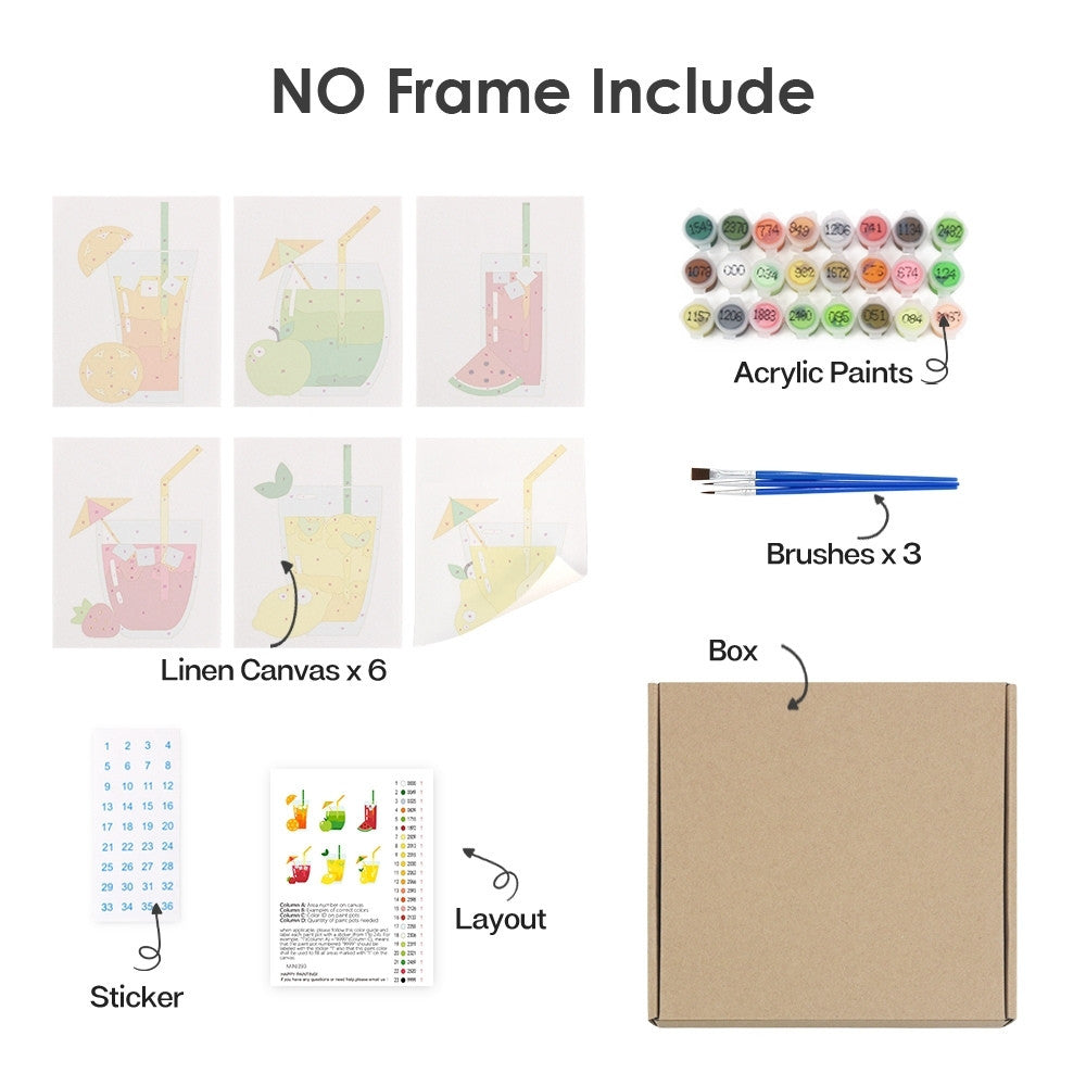 Pintura por números – Juego de 6 lienzos | Bebidas de Frutas Figured'Art
