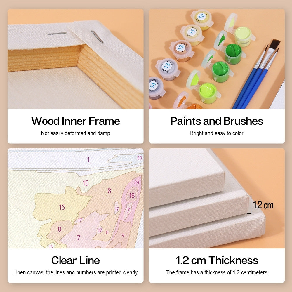 Estos mini cuadros para pintar por numeros son una excelente alternativa a los formatos grandes: compactos, prácticos y rápidos de completar. Perfectos para principiantes y aficionados a la pintura que deseen disfrutar de proyectos creativos y gratificantes, incluso con poco tiempo disponible. También son ideales para reuniones creativas o noches de pintura con amigos, donde cada uno puede pintar su propio lienzo mientras charla, escucha música y disfruta del momento.