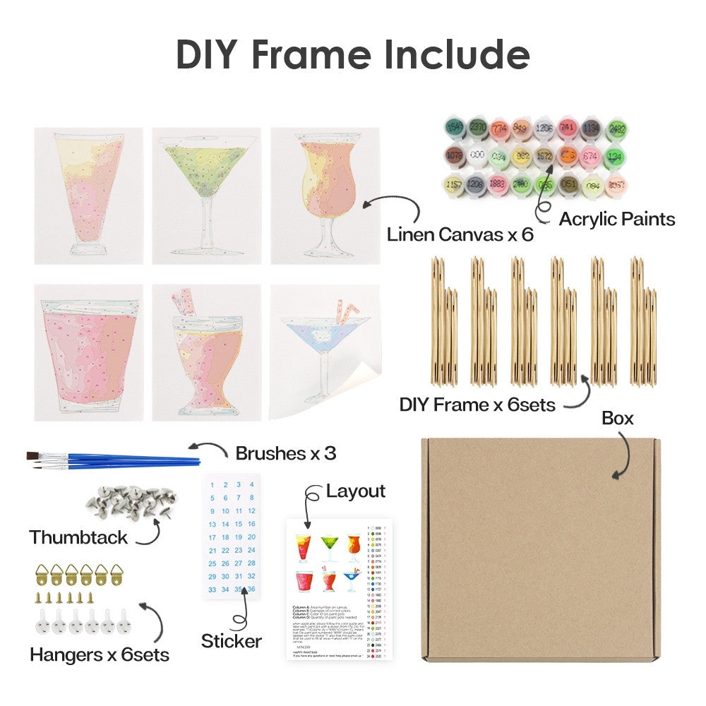 Pintura por números – Juego de 6 lienzos | Cócteles Coloridos Figured'Art