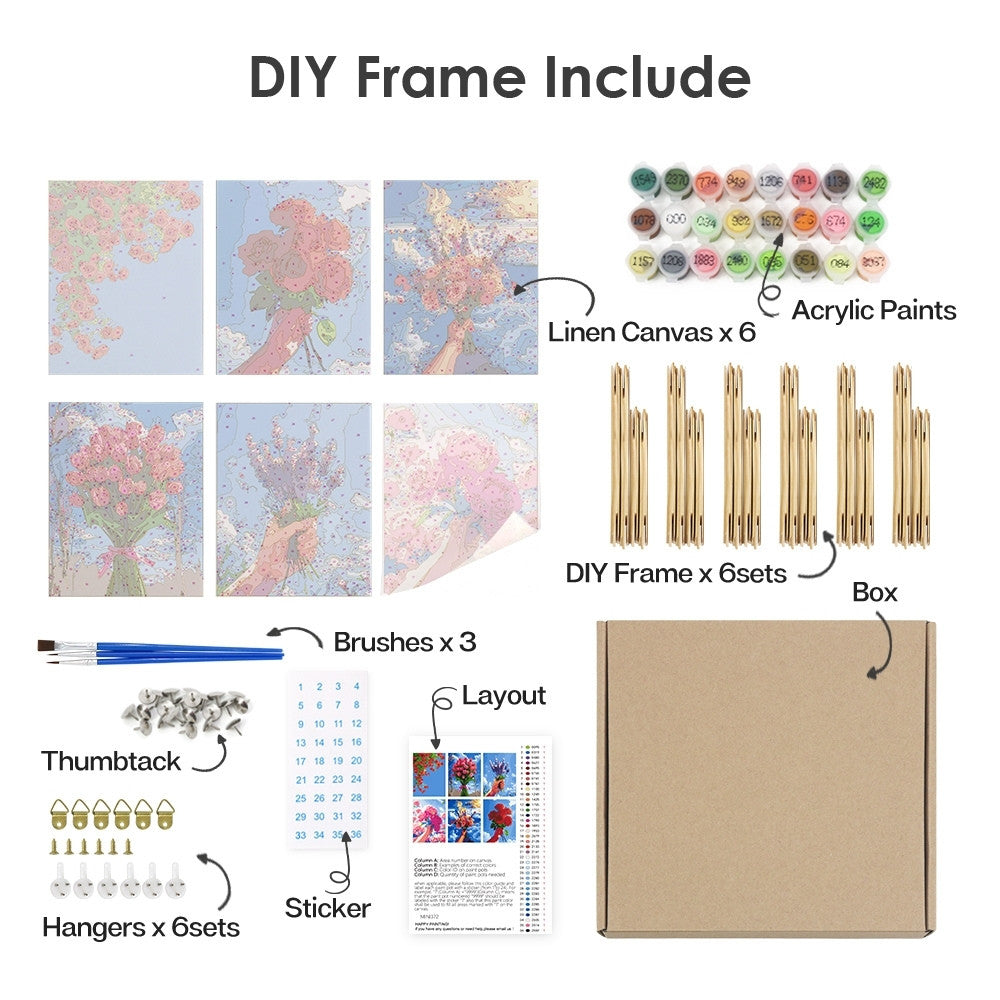 Pintura por números – Juego de 6 lienzos | Ramos de Flores en el Cielo Figured'Art