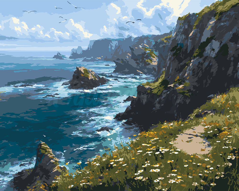 Pintar por numeros Figured'Art - Pradera Florida en el Acantilado