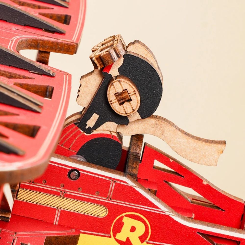 Ajusta el cinturón y mantén el equilibrio con el Capitán del Cielo. Monta este rompecabezas de madera 3D y dale un pequeño impulso para verlo balancearse como un péndulo sobre tu escritorio. Este biplano rojo cuenta con cabina abierta, hélice giratoria y timones móviles, combinando la gravedad y la ingeniería con diversión interactiva.