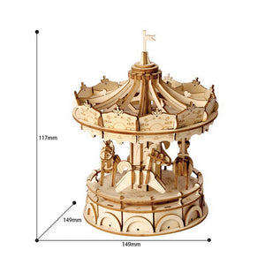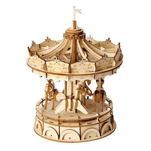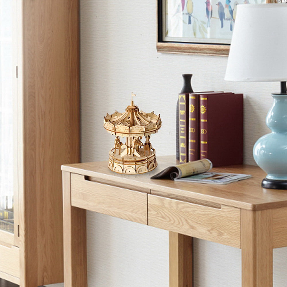 Este puzzle 3D en madera es una maqueta de carrusel, perfecta como decoración de mesa. Ensámblelo fácilmente en aproximadamente 1,5 horas y devuelva la vida a un antiguo carrusel gracias a esta maqueta original y colorida.
