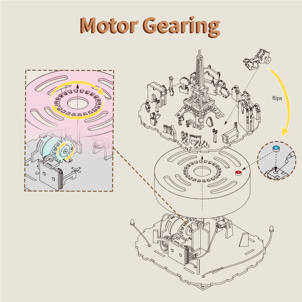 Captura el encanto y la elegancia de la Ciudad de la Luz con esta caja de música giratoria en 3D. El modelo París Romántico combina arquitectura, movimiento, música e iluminación en una pieza de exhibición refinada. Gracias a sus detalles emblemáticos y su base giratoria fluida, es una elección ideal para los amantes de la cultura parisina, el diseño clásico y las creaciones minuciosas.