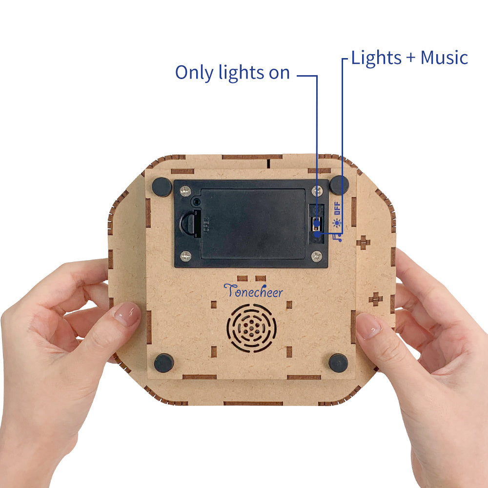• Base giratoria: El diorama gira suavemente al ritmo de la música.